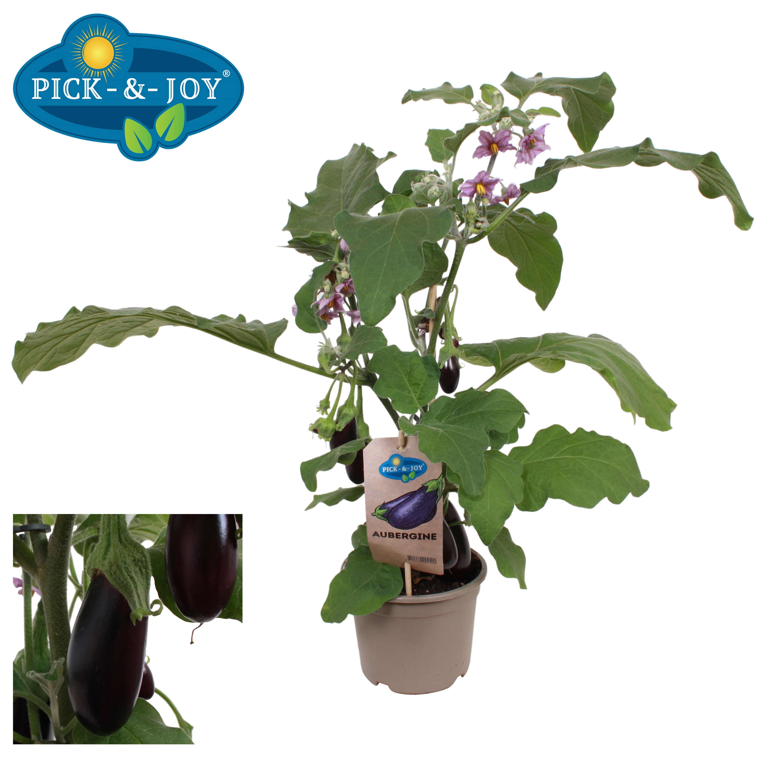 Die Pick-&-Joy® Aubergine wird für viele wahrscheinlich die stilvollste Pflanze im Pick-&-Joy® Sortiment sein. Mit der prächtigen violetten Farbe der Früchte, dem graugrünen Blattwerk und den helllila Blüten ist die Pflanze ein besonderer Blickfang auf der Terrasse, im Garten oder im Gewächshaus. Außerdem schmecken die Auberginen sehr gut, haben eine gute Struktur und eignen sich daher ideal zum Grillen, für Ofengerichte oder pfannengerührte Gerichte. Sehen Sie sich unser Rezept für Grill-Auberginen an. Guten Appetit!