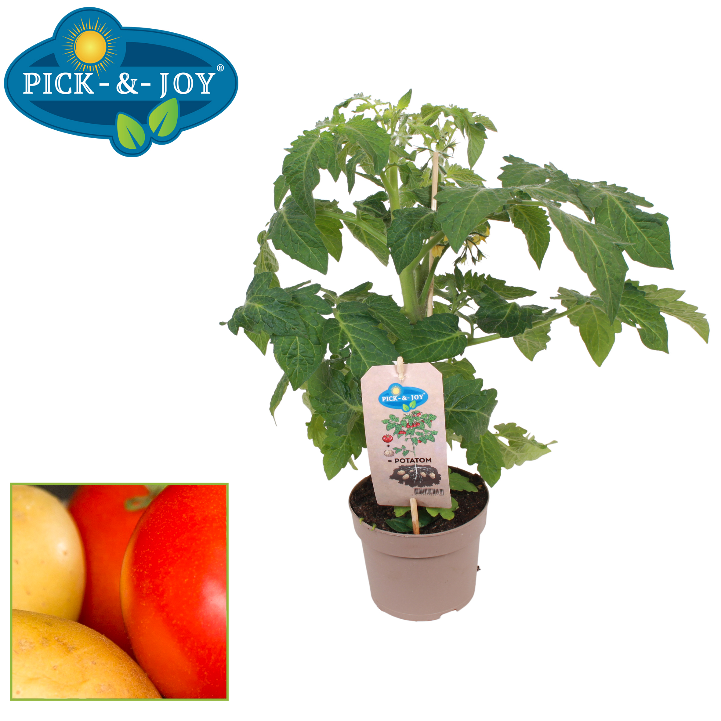 Die Pick-&-Joy® Potatom ist eine einzigartige und faszinierende Tomaten-Kartoffel-Pflanze und daher ein Must-have für Ihren Gemüsegarten oder Ihre Terrasse. Diese besondere Pflanze bringt nämlich sowohl Tomaten als auch Kartoffeln hervor!