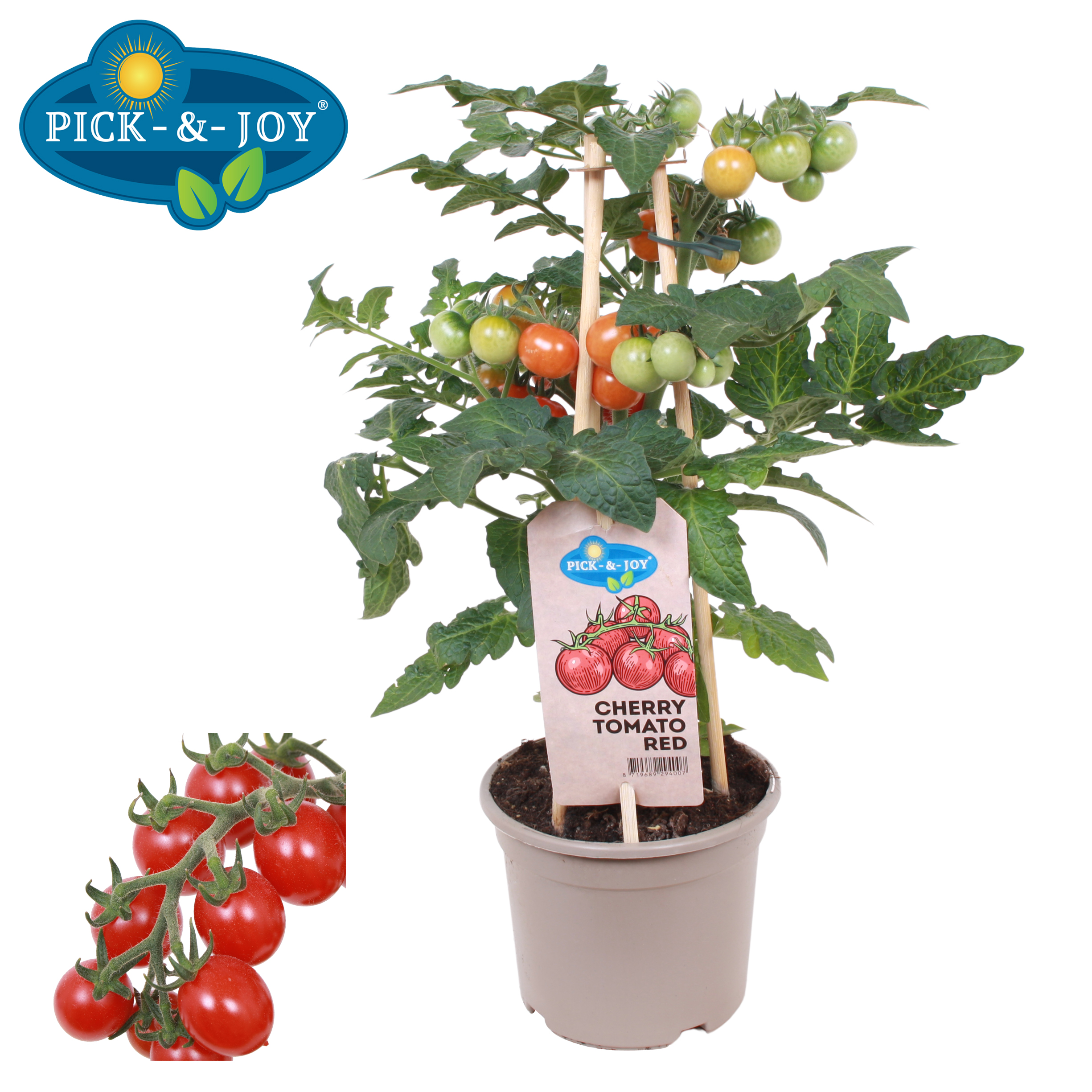 Pick-&-Joy® Cherry Tomato Red is the flagship product in the Pick-&-Joy® range. It’s the original picking tomato plant. You will love it for the large number of delicious tomatoes that you can pick. Pick-&-Joy® Cherry Tomato Red is great for kids. Children will love the cheerful colours and have fun picking lots and lots of delicious tomatoes. Fun, educational, and healthy!