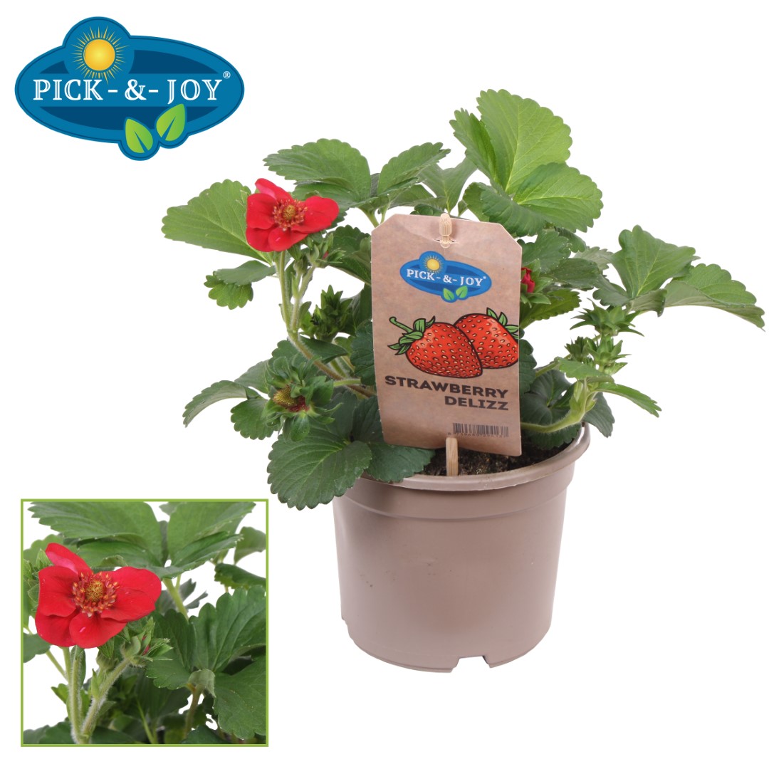 With the Pick-&-Joy® Strawberry Summer Breeze you get a unique strawberry plant in your garden. The dark pink double flowers are beautiful and give an extra ornamental value to this strawberry plant. The strawberries are tasty and have a firm structure.