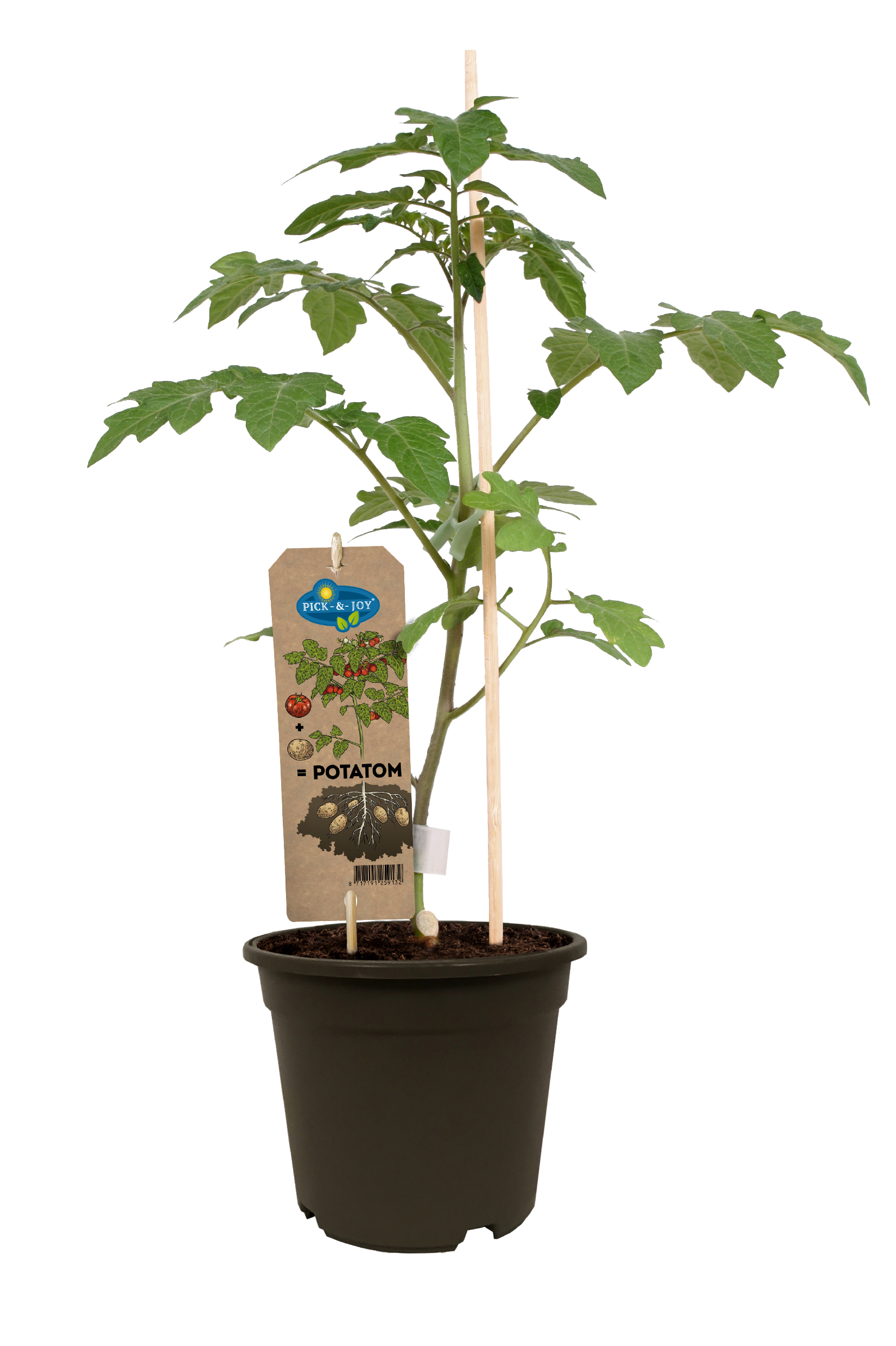 De Potatom blijft een uniek product binnen het Pick-&-Joy® concept van Vreugdenhil Young Plants, wat inmiddels bestaat uit meer dan 16 variëteiten gezonde, smaakvolle plukgroenten. De Potatom, tomaten én aardappelen samen aan één plant blijft verrassend, uniek en voor heel veel consumenten nog steeds volkomen nieuw. Vreugdenhil Young Plants komt met een verbeterde versie aankomend seizoen. Door een verbeterd ras geeft de Potatom smaakvollere cocktailtomaten naast stevige, vastkokende aardappelen en is de plant iets compacter dan voorheen wat een groot voordeel is in het winkelschap. Naast de verbeteringen aan de plant heeft ook de verpakking een nieuwe uitstraling gekregen. Er is een nieuw etiket ontwikkeld waardoor de consument in één oogopslag begrijpt wat er zo uniek is aan de Potatom.